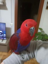 Vendo pappagallo femmina un eclectus roratus nata il 30/05/2022 cresciuta con me fin da piccola, vendo con gabbia ciotole tutto compreso.