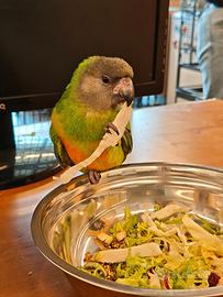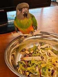 Unico esemplare disponibile di pappagallo del Senegal allevato a mano con amore e presenza, super dolce, coccolone, sempre vicino alle persone, mangia molto volentieri verdura, frutta, un mix adatto su misura per lui poco grasso e estrusi è svezzato da qualche giorno, quasi 3 mesi ottimo come compagno di vita, si può portare anche a spasso con uno dei nostri guinzagli ottimo per famiglie con bambini, grandi piccini viene fornita tutta l'istruzione necessaria e le istruzioni per prendersene cura in collaborazione con una dottoressa esperta disponibile anche gabbia enorme con soli 50 euro in piu completo di anello e documenti Cites italiani ottima alternativa a conuro del sole perché non rumoroso, ai caicco testa nera o caicchi testa arancio per la loro vivacità, questo è l'equilibrio perfetto calopsite, kakariki, amazzone ottimo pappagallo allevato a mano da compagnia