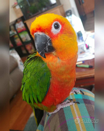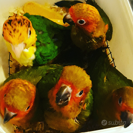 Giovani conuri del sole allevati in casa a mano, ottimo carattere, giocherelloni e simpatici. Anello chiuso FOI e documento Info 3276538629 Segui su istagram: #allevamentopappagalliparlanti @allevamentopappagalliparlanti
