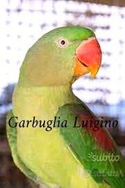 Cedo pullus di pappagallo GRANDE ALESSANDRINO, anellato F.O.I. (Federazione Ornicoltori Italiani Onlus) Il soggetto verrà ceduto completo di certificazione CITES e sessaggio DNA. Specie originaria dei Paesi Asiatici; raggiunge una lunghezza di 60 cm grazie anche alla lunga coda, per un peso che si aggira intorno ai 250 grammi. Il Grande Alessandrino ha un carattere che si adatta particolarmente bene alla vita domestica; non è molto rumoroso ed è un ottimo parlatore. Possibile consegna in allevamento