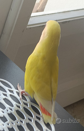 Vendo pappagallo inseparabile allevato a mano ama stare con le persone, 80 euro compresa la gabbia