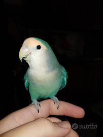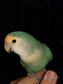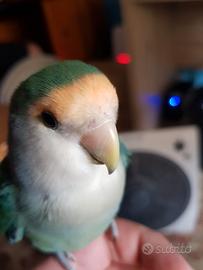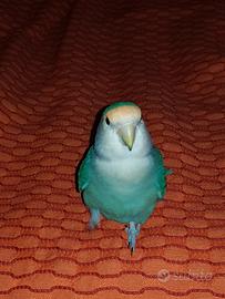 È un pappagallino affettuoso e vivace, abituato alla presenza delle persone e molto curioso.