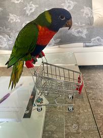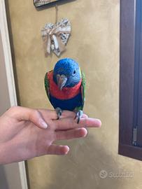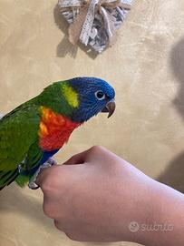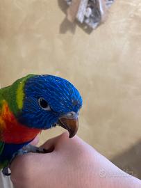 Disponibile Lori arcobaleno di tre mesi allevato a mano, e un pappagallo molto docile e affettuoso sempre in cerca del contatto umano e di coccole ovviamente già abituato in compagnia di altri animali, è stato allevato da una persona molto competente e attenta ai dettagli e alla sua alimentazione. Verrà ceduto con tutta la documentazione necessaria e anello inamovibile (in acciaio no alluminio) per ulteriori informazioni e dettagli 3491979241- Daniele
