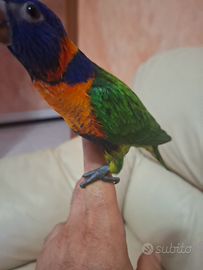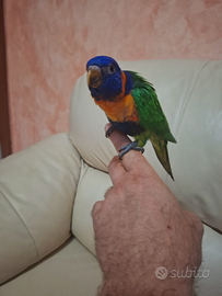 Pappagallo lori rubitorquis allevato a mano