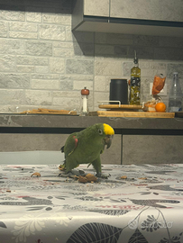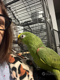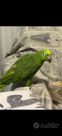 Amazone fronte gialla maschio di solo sei mesi allevato a mano solo interessati ed amanti della razza verrà ceduto con regolari documenti e gabbia compresa ne prezzo.un vero affare 3914379620
