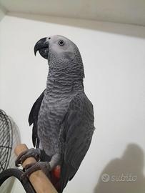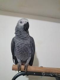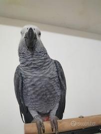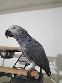 Pappagallo cenerino di 10 mesi allevato a mano, molto socievole di carattere, in possesso di certificato CITES