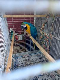 Pappagallo ARARAUNA DI ANNI 2,femmina,simpatica ,parla,chiama..... cedo prezzo poco trattabile con CITES,TRASPORTINO, CORDINO E GABBIA (solo il valore della gabbia vale 500€) tutto a 1800.