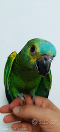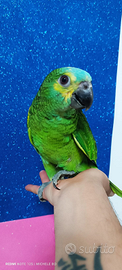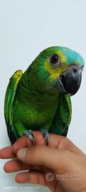 Vendo Amazzone a Fronte Blu, soggetto sano, vivace e abituato alla presenza umana. Esemplare seguito quotidianamente, con piumaggio compatto e colori brillanti.