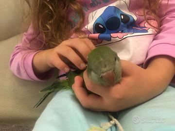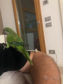 Pappagallo parrocchetto Monaco allevato a mano, era molto mansueto fino 2 mesi fa' , a causa del poco tempo da dedicagli ora lo è meno .