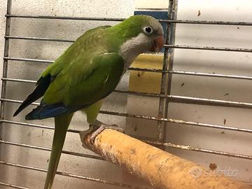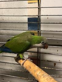 Cedo Parrocchetto Monaco femmina portatrice di Blue, nasce da maschio Blue e femmina lutina, euro 120, oppure scambio con maschio lutino o albino con relativa differenza da concordare, il pappagallo è in regola con tutti i documenti ( dichiarazione di nascita, protocollo forestale ecc..), anellata Foi nata il 06/02/2024, ha già deposto quest'anno, non è allevato a mano, non rispondo a mail e messaggi di nessun genere, solo chiamate