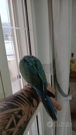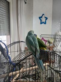 Salve x motivo di lavoro tolgo pappagallo parachetto del collare celeste allevato a mano ha 5 mesi e sta crescendo fuori gabbia e bravo e calmo tolgo per motivo di lavoro prezzo 150 completo di gabbia cibo e accessori
