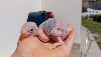 Disponibili alla prenotazione 2 parrocchetti dal collare allevati a mano, saranno ceduti a fine svezzamento. Uno blu, uno cremino (occhi rossi). 170 euro il blu, 200 il cremino. NO PERDITEMPO !!