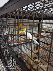 Cedo 2 coppie di pappagalli parrocchetti dal colare con gabbia 1mx1mx1m, coppie pronte per la riproduzione, con nidi e tutto