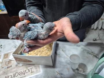 Pulletti di parrocchetti cleartail viola e blu per maggiori informazioni chiamare al numero 327 8191619