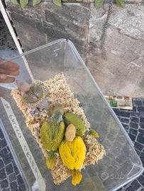Salve si cedono cedono splendidi pulli di paroocchetto dal collare da imbecco di varie mutazioni, abituati già all imbecco fin dai primi giorni di vita soggetti italiani per qualsiasi informazione contattateci