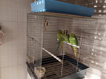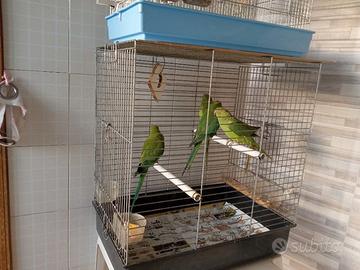 Parrocchetti dal Collare ancestrali giovani, figli di miei riproduttori, non si può riconoscere ancora il sesso, molto ben allevati, in forma e salute, vendo ad € 70,00 cad. irriducibili i primi soggetti, in quanto molti, per poi passare successivamente ad € 80,00, comunque meno del normale prezzo minimo di € 90,00/100,00 a salire ( per più soggetti, sconto che eventualmente si tratta esclusivamente di persona - possibilità di avere la gabbia zincata in foto, specifica per pappagalli di taglia medio-piccola, media e medio-grande, mis. L cm. 59 P 39 H 65, in regalo, stato ottimo, pagata all'epoca circa 100 €, acquistando 4 soggetti, e "solo in questo caso", a prezzo pieno, senza alcuna ulteriore trattabilità - ). Non allevati a mano ( sono contrario - è una moda, business, e difficilmente ci si può dedicare il giusto, stressando gli animali, con conseguenze spesso problematiche psichiche e comportamentali dell'animale - ), ma dai genitori, in voliere molto grandi, quindi adatti come animali da compagnia, o da riproduzione.