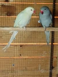 Vendo ad euro 80 cad uno due parrocchetti dal collare anno 2025 non allevati a mano Grigio Turquoise-ino Se presi tutti e due 150 euro non trattabili Contattare solo se veramente interessati no perditempo grazie