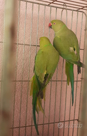 Selezionata coppia di pappagalli parrocchetti dal collare nati in gabbia €80 la coppia