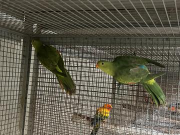 Disponibile coppia adulta collari cleartail viola, 10 calopsite colori misti, blocco di 30 inseparabili roseicolli, 20 agapornis personata, coppia di pyrrhura emma, coppia 2025 di alicremisi e blocco di 40 cocorite.