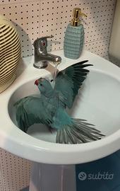 vendo per mancanza di tempo parrocchetto dal collare femmina allevato a mano. Ottima salute e dolcissima
