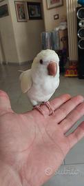 Pappagallo parrocchetto albino cremino allevata a mano 13 mesi femmina con cites sesaaggio e anello Dolcissima