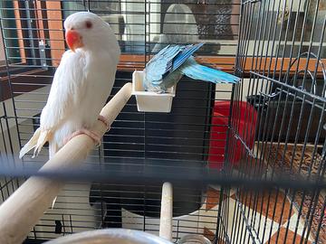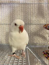 Cerco una casa privata (no allevamenti, no riproduzione) per parrocchetto dal collare albino, allevato a mano.