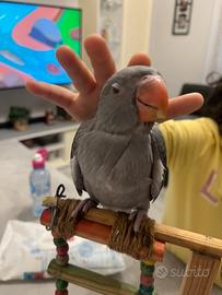 Disponibile dolcissimo e affettuoso novellino ancora da svezzare di parrocchetto dal collare . Dovrebbe essere un maschio (comunque da sessare) doppio portatore di opalino e cleartail . Di solito già da subito si evidenzia il classico collare che normalmente si presenta a 2 anni . Il pappo è un greyblu /ct/opa Nato da grey blu cleartail /opa x indigo greyblu opa/ct Ancora 2 pappe al giorno do 200€ prezzo affare X maggiori info e dettagli scrivetemi