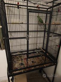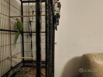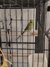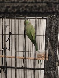 Vendo parrocchetto dal collare maschio adulto età farà 4 anni a marzo 2026 riproduttivo al 100% vendo con tutta la voliera 6 mesi fa e morta la femmina e non ho più ripreso una compagna prezzo 220 euro
