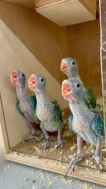 Pulli parrocchetto dal collare disponibile blu ( viola) o verdi. Hanno anello foi. In salute e curati in ogni minimo dettaglio