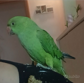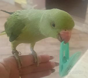 Vendo parrocchetto dal collare di 5 mesi allevato a mano. Per ora l'unica parolina che riesce a dire è il suo nome ma piu avanti sarà un ottimo pappagallo parlante . Lo vendo a malincuore per trasferimento. Per info chiamare 380 774 3484