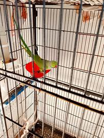 Pappagallo Parrocchetto dal collare maschio 2 anni e mezzo di vita con gabbia grande. Euro 130 compresa la gabbia Tel. 3407214552