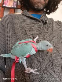 Parrocchetti dal collare,allevati a Mano abituati alla pettorina si consegnano a fine svezzamento
