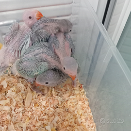 Disponibili pully di parrocchetti monaci e collari di varie mutazioni lutino,albino,blu pallid,cremini,pezzati, blu tutti nati nel mio allevamento pappagalli parlanti e molto affettuosi per qualsiasi info contattatemi al numero 3509581647