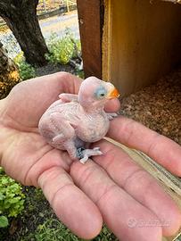 Disponibile pullo da iniziare ad imbeccare a mano, verrà ceduto solo a persone capaci di farlo no a chi si improvvisa i quali inizieranno ad imbeccarlo in quanto fino al momento della cessione il pullo rimarrà nel nido con i genitori. Soggetto perfetto mutazione serie blu, con anello, sesso sconosciuto. No curiosi.