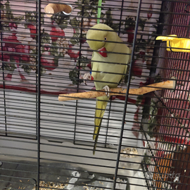 Parrocchetto dal collare allevato a mano, farà due anni a marzo. Vendo solo a chi ha già una femmina per fargli compagnia