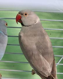 Vendo un bellissimo coppia di parrocchetto dal collare riproduttivo . Maschio grigio femmina blu. Prezzo 350€ Leggermente trattabile.