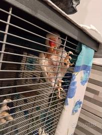 Vendo pappagallo celeste età 1 anno allevato a mano, buono sopratutto con bambini, perché è cresciuto con i miei figli prezzo 200 euro, il pappagallo bianco è in perfetta salute solamente stressata portata dal veterinario appunto per farla controllata se volete potete consultate il vostro veterinario di fiducia stiamo facendo un trattamento di gocce per farle crescere appunto le piume, siccome sono cresciuti assieme quella bianca la do in regalo insieme al pappagallo celeste per qualsiasi informazione chiamare il numero 3933686364