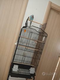 Parrocchetto dal collare 9 mesi circa, abituato alle persone cerca famiglia! Prezzo Compreso di gabbia, nuova.