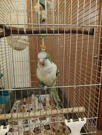 Vendo parrocchetto monaco allevato a mano ma che ha perso un po' di confidenza con l'uomo visto che per motivi di spazio e casa ho dovuto metterlo in una voliera in giardino. Per il resto è sanissimo e molto buono. Semplicemente bisogna fargli riprendere un po' confidenza per farlo ritornare del tutto coccoloso Tutti documenti CITES in regola e ottimo esemplare ne caso si volesse fare coppietta un giorno (è da sessare) Siccome lo lasciavamo sempre libero in casa gli abbiamo fatto spuntare un po' le punte delle ali per fare in modo che non facesse lunghi tratti nel caso fosse scappato dalla finestra (Da veterinario dedicato) Un parrocchetto allevato a mano costa almeno 200, perciò questo lo vendo ad un prezzo del tutto onesto. Grazie :)