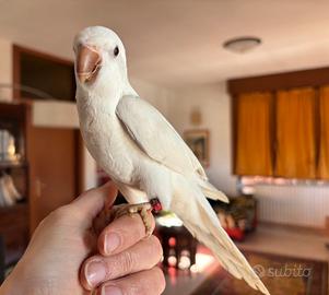 Disponibile parrocchetto monaco bianco allevato a mano, ottimo carattere, anellato FOI, nato questa estate, del tutto svezzato Documenti Cites in regola Provincia di Bologna Clara 3405828767