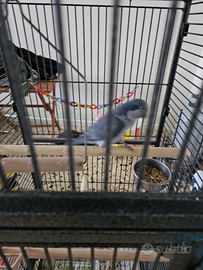 Vendo parrocchetto monaco con gabbia il parrocchetto ha 8 mesi abituato ad essere preso in mano e anche a stare fuori dalla gabbia e ripete delle parole prezzo affare e non trattabile