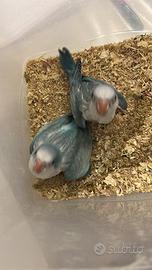 Pulli di parrocchetto monaco opalino blu a due imbeccate. Zona castelli romani grottaferrata