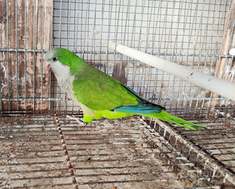 Coppia parrocchetto monaco anellata con cites e sessaggio molecolare maschio verde per femmina Albina consegna a Terrasini ....ps il maschio e allevato a mano fuori la gabbia e docile e si fa toccare e parla molto
