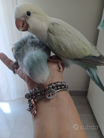 Parrocchetto monaco snow acqua femmina di 7 mesi cresciuta a mano con anellino e cites e certificato sessaggio