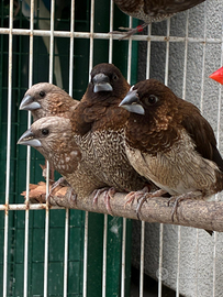 Disponibili 5 passeri del giappone 3 maschi e una femmina e un bengalino , si cedono solo in blocco a 25€ tutti