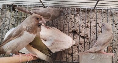 Disponibili giovani Passeri del Giappone grigi come da foto, in perfetta salute, allevati all'aperto e senza uso di farmaci. Il prezzo in blocco è di 5€ a soggetto. Per informazioni potete contattarmi telefonicamente al 329.9419917 o inviarmi un sms.