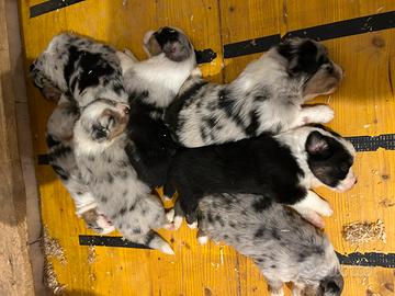Cuccioli di Pastore Australiano coda lunga disponibili ancora 4 Femmine ed 1 maschio Blue Merle nati il primo di gennaio 2026 saranno consegnati alla nuova famiglia dal compimento dei 60 giorni di vita sverminati vaccinati con microchip e pedigree genitori esenti displasia anche e gomiti e testati per le patologie della razza il tutto dimostrabile da certificati ufficiali cuccioli e genitori sono visibili previo appuntamento se interessati e per ulteriori informazioni telefonare al 3498718038