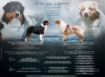 vendesi bellissimi e divertentissimi cuccioli di pastore australiano con pedigree enci, due vaccini, sverminazione completa, certificato di sana costituzione e occhietti puliti. i cuccioli provvengono da un importante linea di soggetti campioni di bellezza e sani da generazioni, testati per le patologie genetiche di razza, oculopatie e displasie e nessun caso di epilessia. vengono ceduti con regolare contratto tra le parti a tutela dell'acquirente e del cucciolo stesso come animale da compagnia e non da riproduzione. posso inoltre portarli a destinazione personalmente in cambio di un rimborso spese. sono didponibile mantelli red merle e black tricolor