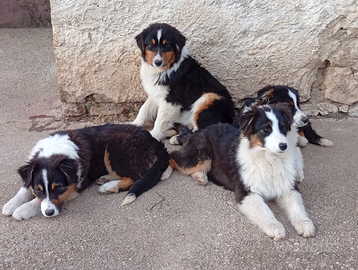 Disponibili da subito cuccioli di Pastore Australiano black tricolor: due maschi e una femmina a coda lunga. I cuccioli vengono ceduti vaccinati, sverminati, con microchip, iscrizione all'anagrafe canina, libretto sanitario e Pedigree.