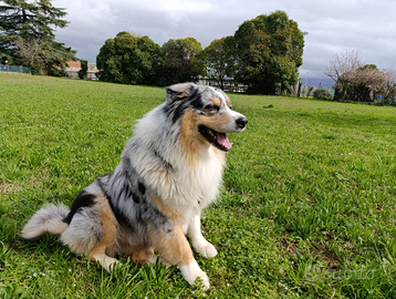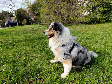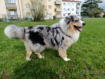 Buongiorno, splendido maschio di pastore australiano Blue merle, quasi 4 anni, 30 kg, con pedigree, in ottima salute. Disponibile per accoppiamento. Per ulteriori informazioni non esitate a contattarmi. Australian shepherd Pastore australiano